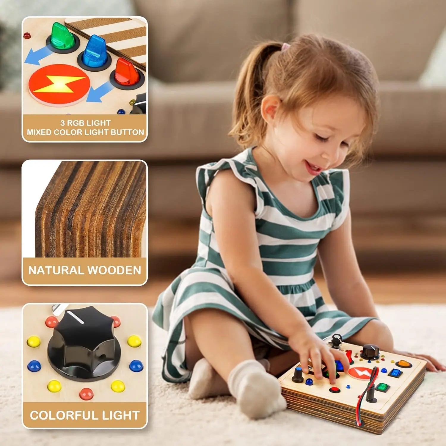 • Montessori Busy Board: Features 10 switches with 19 LED lights, keeping toddlers engaged and entertained for hours.